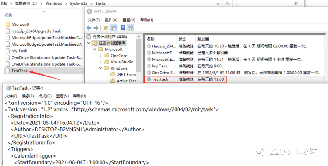 1. 在 Windows 10 中,删除 XML 文件,并不影响计划任务的运行,且在 taskschd.msc 任务计划程序中,依然存在对应任务;