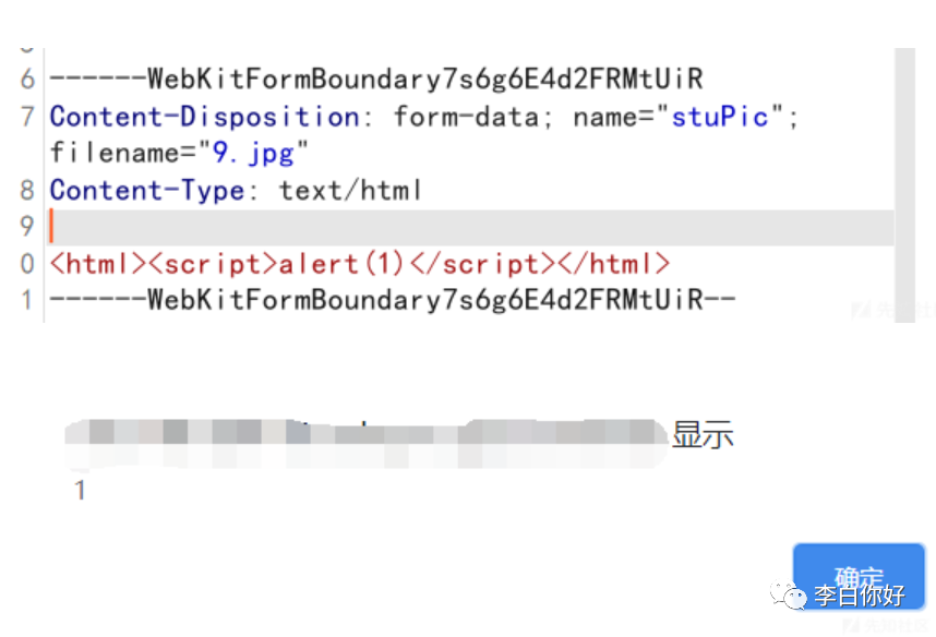 选择学工系统,利用刚刚爆破的账号,同样可以登录。学生信息处,可以进行上传,尝试利用,利用失败,但是在这里发现了一个有意思的点。修改Content-Type的类型为text/html,可以造成弹窗。