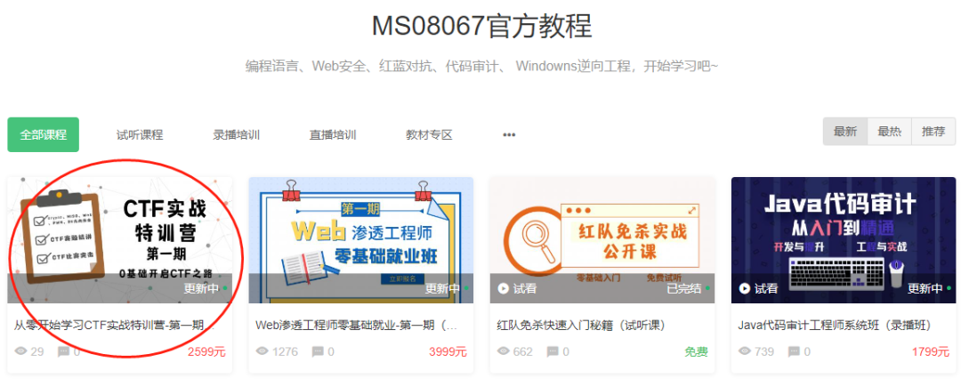 培训采用直播+录播+WIKI+靶场+作业的形式,无需等待,报名后即刻至官网立即学习!