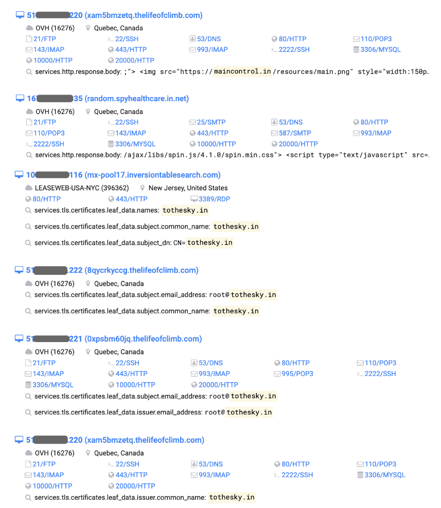 继续根据相关的 HTTPS 证书搜索得到相关的网站主机信息:
