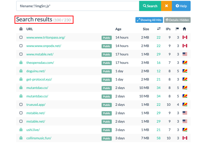 另外,统计发现主机相同 IP 下 NFT 钓鱼站群,单独一个 IP 下就有 372 个 NFT 钓鱼站点: