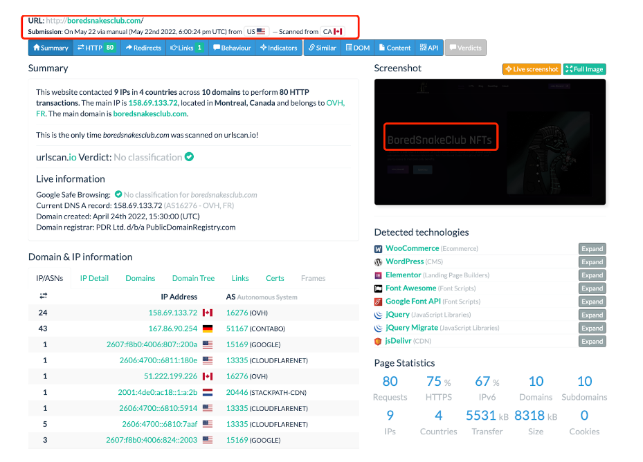查询该域名的 HTTPS 证书启用时间是在 7 个月之前,黑客组织已经开始实施对 NFT 用户对攻击。