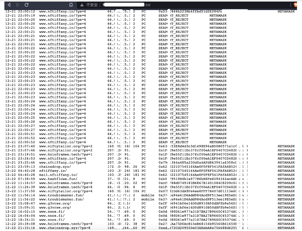 这些文件记录了受害者访问记录、授权情况、使用插件钱包的情况: