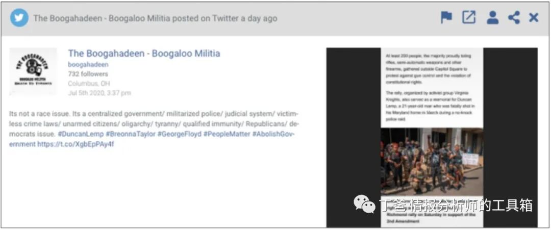 伊斯兰国和基地组织等圣战组织不再是恐怖主义和极端主义威胁的唯一元凶。基于阴谋论、右翼意识形态和歧视性世界观的国内极端主义运动现在也对国家安全构成严重威胁。公共网络空间同样也被这两种极端主义分子利用,在传播宣传、招募人员、融资、有时甚至策划方面发挥着巨大作用。OSINT数据可以帮助政府了解极端组织的运作方式,从而预测公共安全风险,保护公民和资产免受国内和全球恐怖主义的影响。