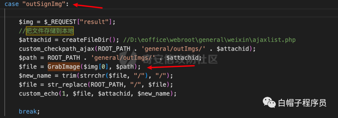 (1) 获取一个result参数,然后传入GrabImage函数进行远程文件抓取操作。
