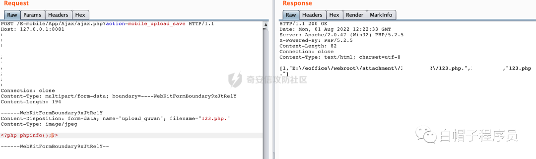 漏洞出现在E-mobile/App/Ajax/ajax.php文件中,是后缀过滤被绕过导致的。