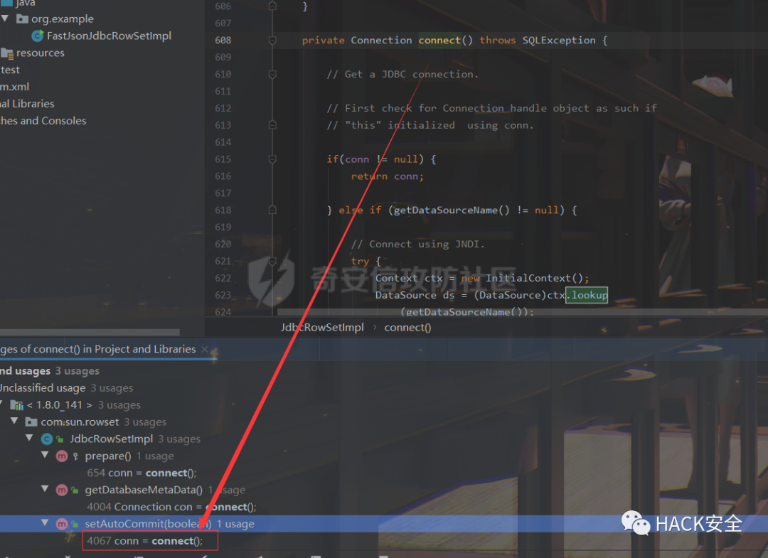 首先类名是com.sun.rowset.JdbcRowSetImpl 也就是@type 的值