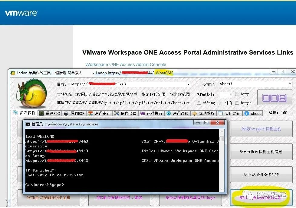 Ladon url.txt cve-2022-22954.ini为了方便查看存在的漏洞结果,对PY脚本做一点小修改,回显结果如下