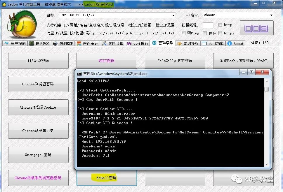 本地安装有xshell,自己忘记SSH密码,也可以直接Ladon study读取密码