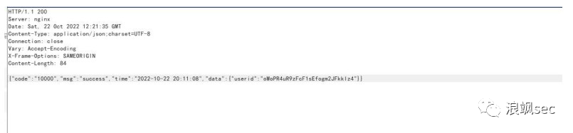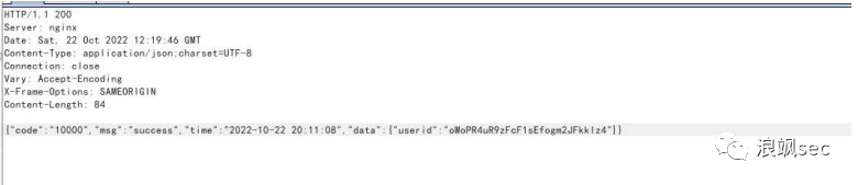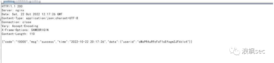将response中的("code":"10000" ,"msg":"success","time":"2022-10-22 20:17:26" ,"data":{"userid":"oWoPR4uR9zFcF1sEfogm2JFkkIz4"}复制下来。