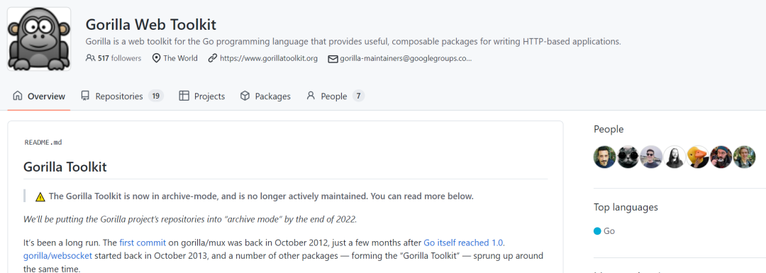 流行的开源 Go 语言 Web 工具包 Gorilla 宣布已正式归档,