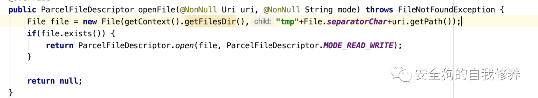 这个接口也支持向文件中写入内容。路径uri都和读一样,只需要使用FileOutputStream对象去进行写就可以将内容写入,但是这个接口只能追加写入内容,不能覆盖内容,而且也不能创建文件,实现一个写入poc最终如下所示