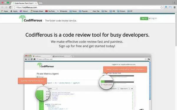 Codifferous是一款免费的代码审查工具,能为我们提供更快的代码审查服务。无论你在何时何地,Codifferous能让你的团队协作审查工作变得更容易。你忘记了一个pull请求?没事。Codifferous允许你检查任意分支上的代码,无论何时你都可以留下注释、获得反馈。