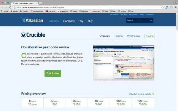 Crucible是另一款超级受开发人员欢迎的代码审查工具,可以审查代码、讨论修改,通过Crucible灵敏的审阅流程来确定缺陷。Crucible能够使得Subversion、CVS、Perforce等版本控制软件的代码审查变得简单起来。