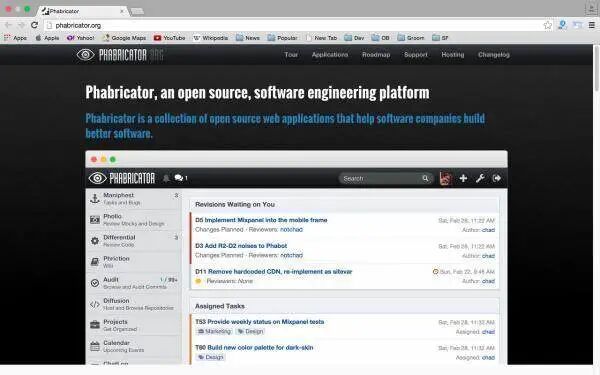 Phabricator是一个开源软件和web应用,包括代码审查、托管GIT /Hg/ SVN、寻找bug、浏览和审计源代码等功能。