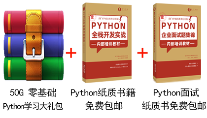 2、包邮发放价值12800元的路飞内部资料《Python全栈开发实战》纸质书籍和《Python企业面试题集锦》纸质书籍及发送50G电子版零基础“Python学习大礼包”+5G面试大礼包+5G的Py工具合集和学习路线图集锦。