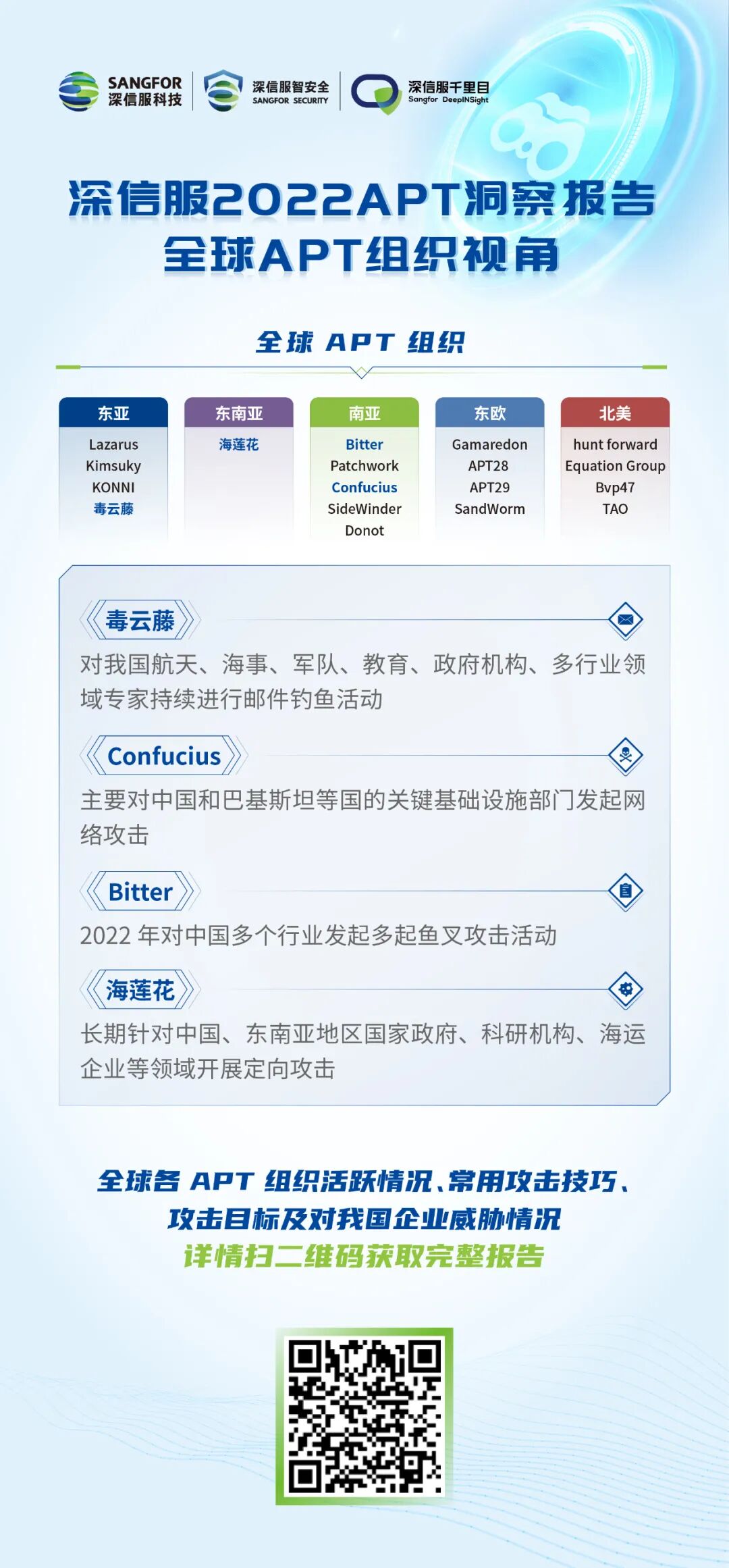 深信服千里目安全技术中心深瞻情报实验室汇总2022年活跃APT组织及其攻击情况,从漏洞利用、攻击技巧、攻击事件、全球APT组织和攻击防御五个视角为各位用户朋友洞察APT的演进趋势,希望能够为国内网络安全防御建设提供新的思路。