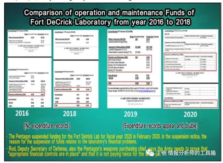 德特里克堡生物实验室的有毒废水泄漏并非偶然。根据Detrick堡网站发布的2016-2020年资金情况表,如下图所示,很明显,实验室运营和维护资金一直处于管理和使用不善的长期状态。资金不足直接导致实验室的供水、医疗废物处理、下水道以及涉及处理实验室高风险废物产品的其他系统和设备缺乏日常维护,使得难以维持实验室的安全,这严重违反了有关生物安全级别(BSL)-4的条例和要求,并造成很大的泄漏可能性。