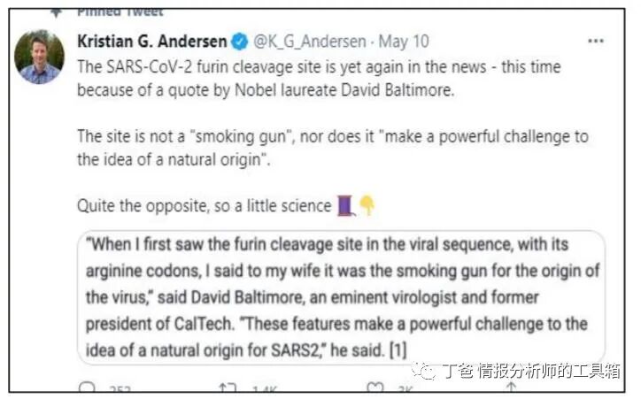 2020年,加州病毒学家克里斯蒂安•G•安徒生(Kristian G Andersen)在一月份发给福西(Fauci)的电子邮件中写道,他认为冠状病毒是人为的。但经过仔细研究,安徒生改变了主意,在3月份发表的一篇论文中写道,通过比较已知冠状病毒的基因组序列数据,可以确定新冠病毒的起源是完全自然的过程。但这位病毒学家很快遭遇了巨大的网络暴力,最终被迫关闭了他的Twitter账户。