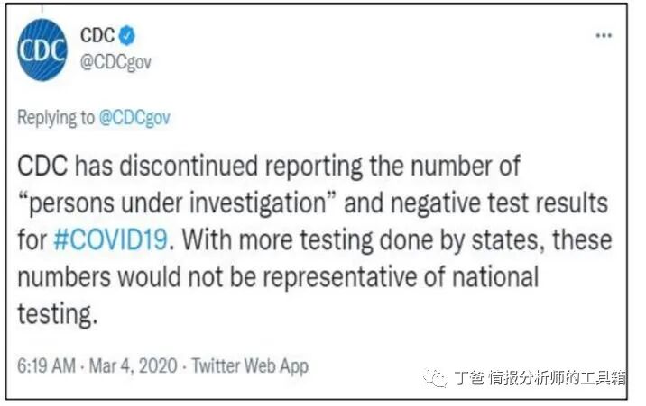 2020年3月2日,美国疾病控制与预防中心(CDC)以“数据不准确”为由,停止了报告关键数据,如接受新冠肺炎检测的人数、阴性检测结果人数和国家确认的诊断人数。