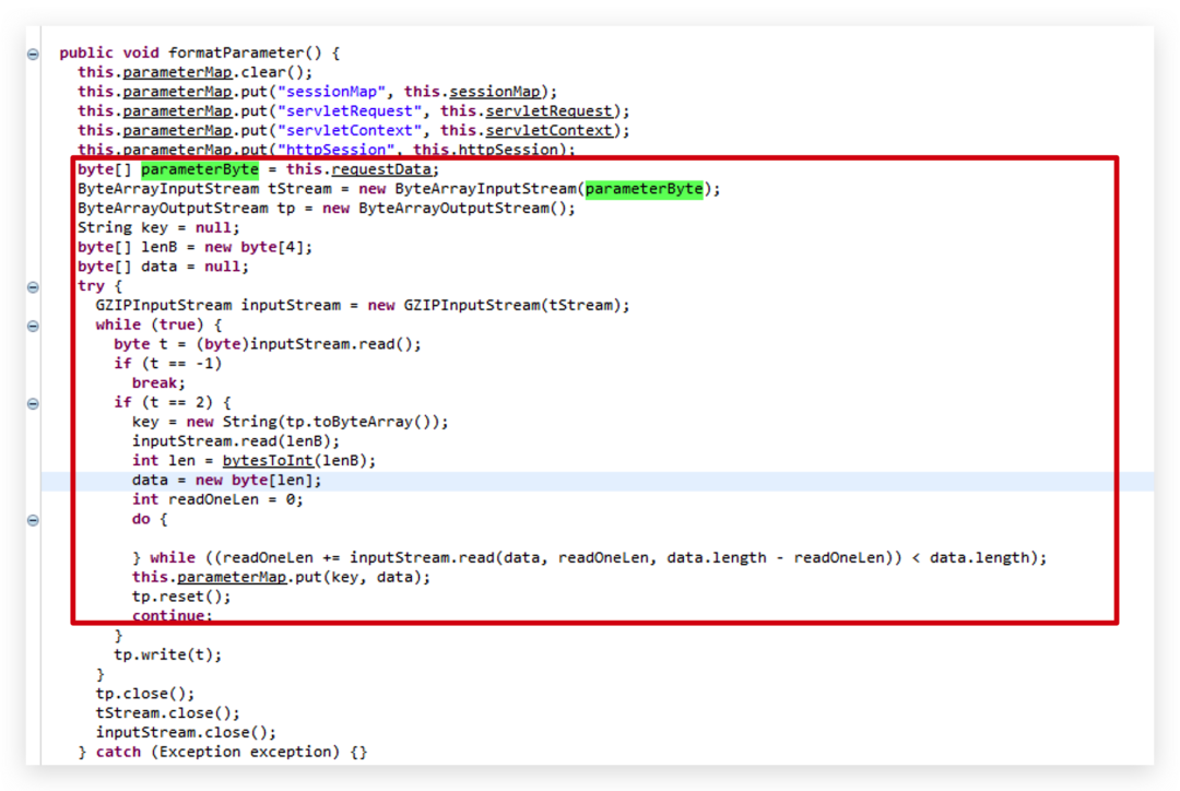 void formatParameter():{"ILikeYou":"bWV0b28="} prameterMap,又将praameterMap放入request的parameters属性