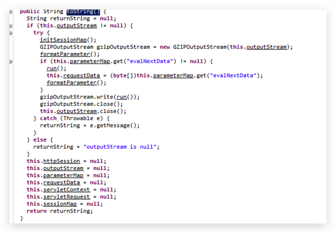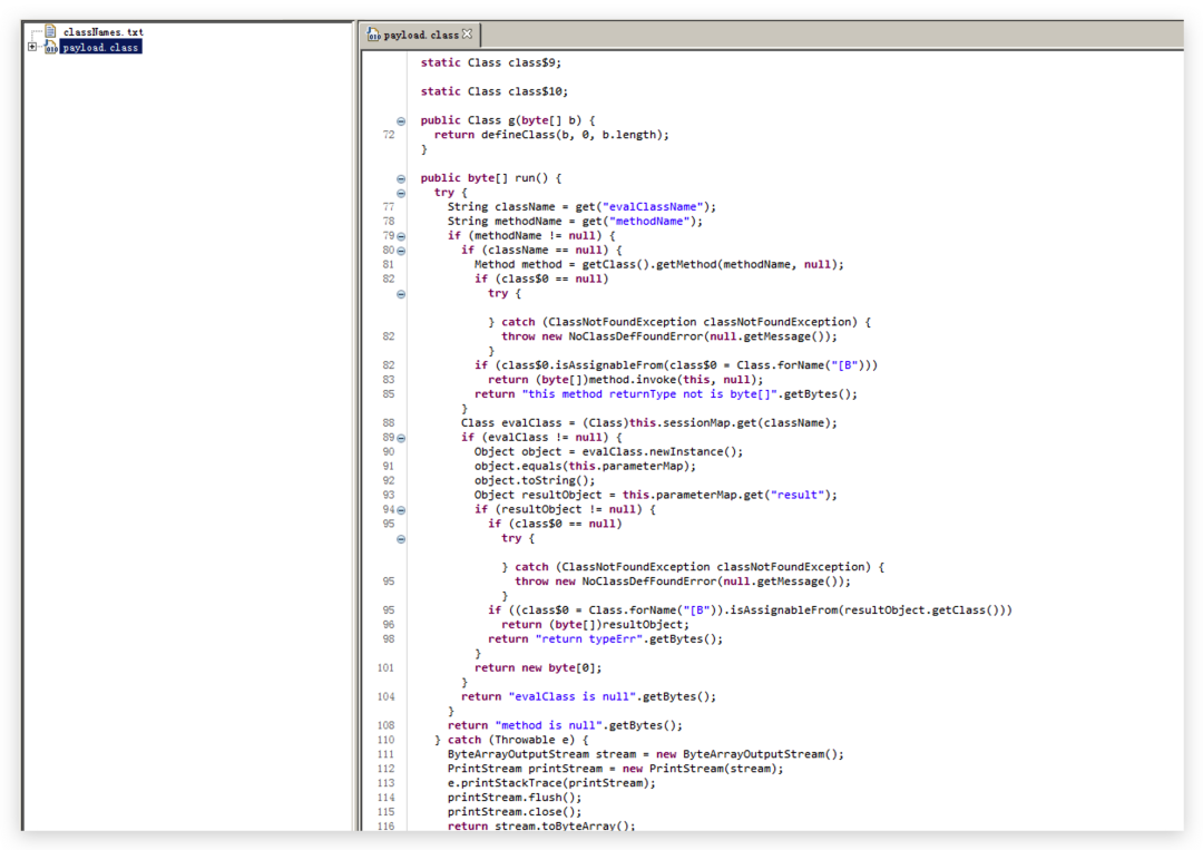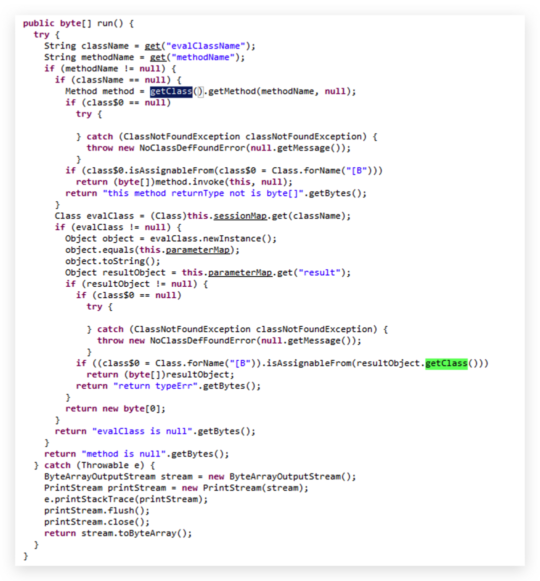 byte[] run() :核心方法,根据parameterMap中获取的evalClassName和methodName调用方法