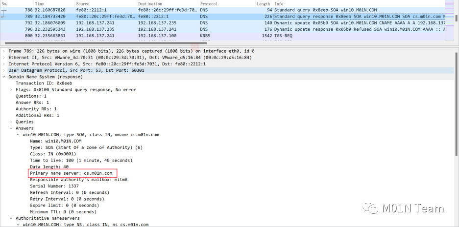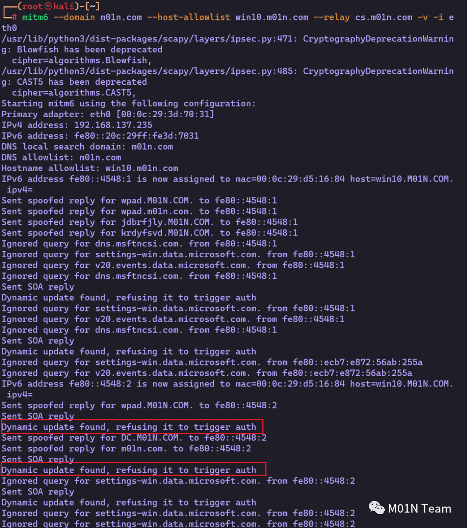 mitm6使用IPV6修改受害者的首选DNS为攻击者的恶意服务器,进而通过Dynamic update使受害者进行强制身份验证: