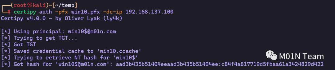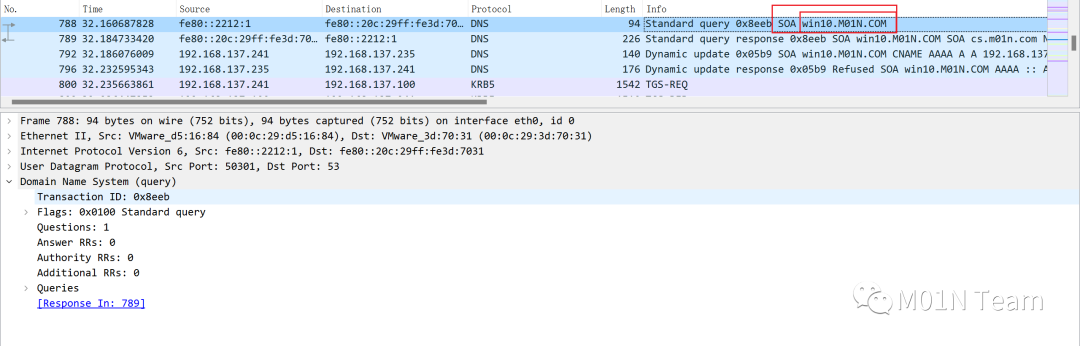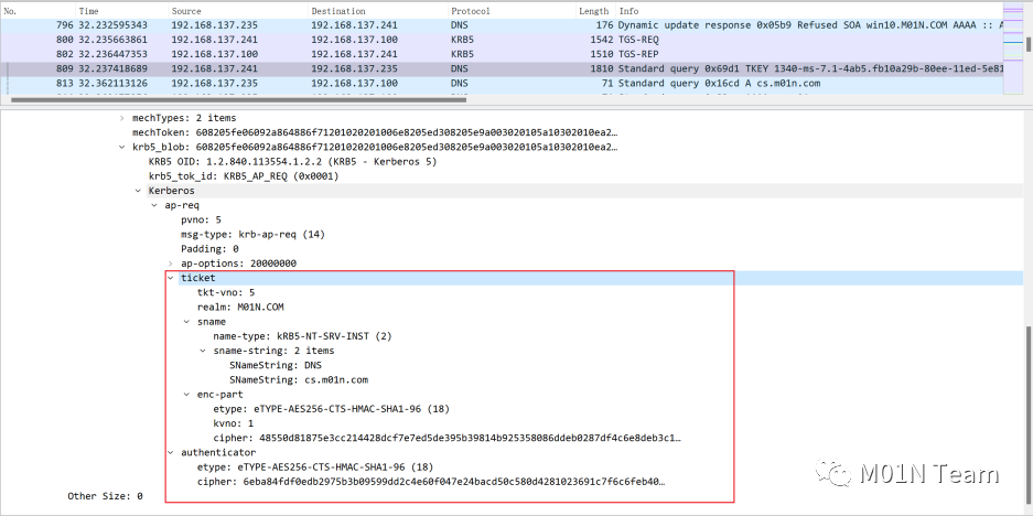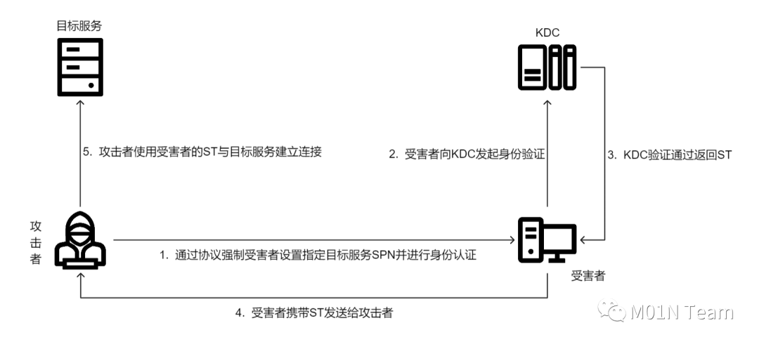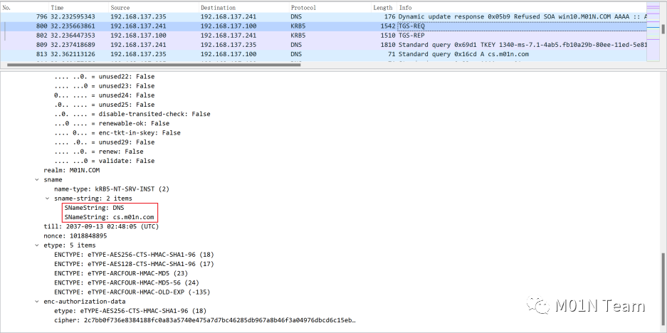 受害者向KDC验证,并且使用了攻击者指定的SPN:cs.m01n.com