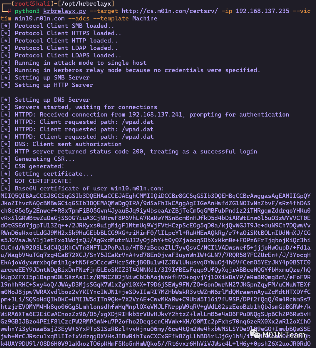 在此我们将上述所说用于触发受害者客户端身份验证的协议选为DNS,中继到的服务使用的协议选为ADCS的HTTP认证,进行具体的实例分析