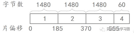 需要注意的是,13 位片偏移当中记录的字节数是当前分片在原数据开始处的偏移字节数的值÷ 8 \div 8÷8 得到的,比如分片报文 2 在原始数据开始处的偏移字节数是 1480,其对应的 13 位片偏移的值就是1480 ÷ 8 = 185 1480\div 8=1851480÷8=185。