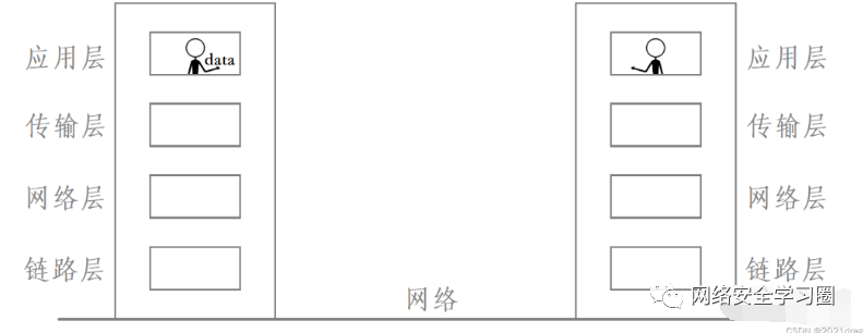 双方在进行网络通信时,发送的数据并不是直接从一方的传输层直接发送到了另一方的传输层,而是需要传输层将数据继续向下进行交付,在网络层和链路层经过数据封装后再通过网络发送到对方主机,对方主机收到数据后也同样需要在链路层和网络层进行数据解包,此时对方的传输层才拿到了发送过来的数据,然后再继续将该数据向上进行交付。