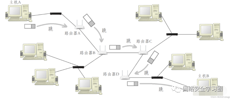 数据进行的网络传输一般都是跨网络的,而路由器就是连接多个网络的硬件设备,因此数据在进行跨网络传输时一定需要经过多个路由器。