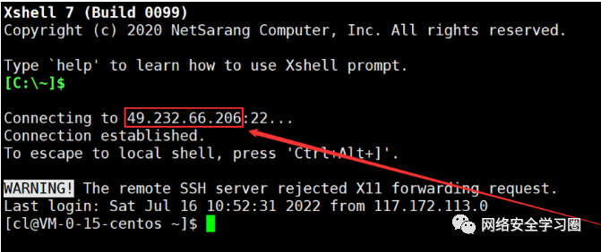 我们连接云服务器时,连接的这个 IP 地址就是云服务器的公网 IP 地址。