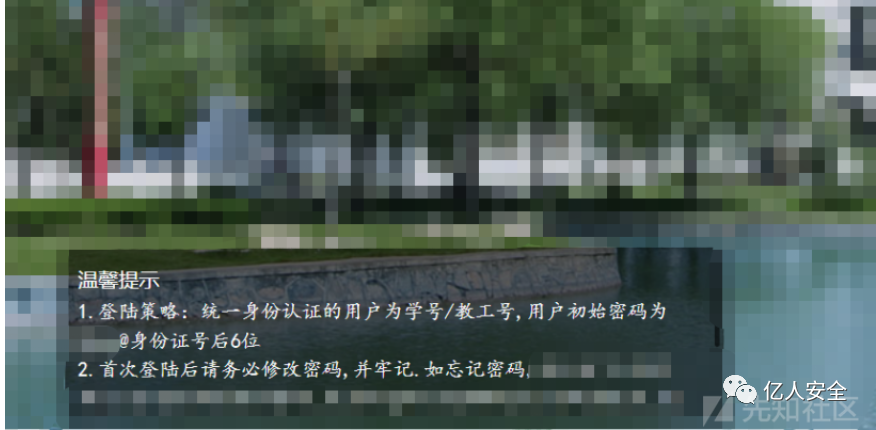 在外网进行系统测试,发现大部分都需要统一身份认证,瞅瞅该目标单位的统一身份认证要求,可以看到初始密码的规则是 [email protected]后六位,用户名是学号