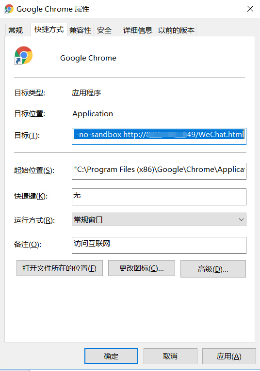 chrome 浏览器 创建快捷方式到桌面 右键编辑快捷方式