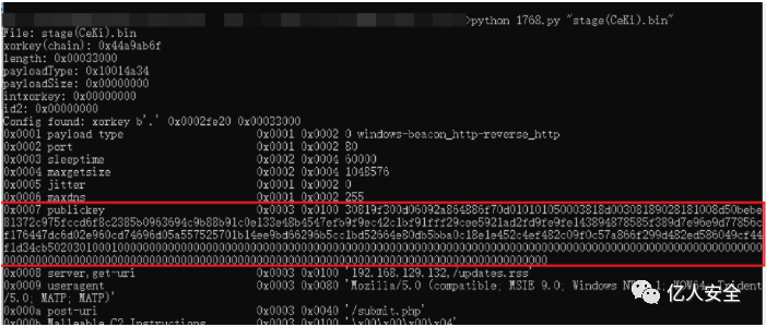 2、攻击者如果是通过stager上线了,即小马拉大马的形式,通过流量设备我们可以获取到拉的beacon,对beacon进行操作,从beacon中可以直接拿到公钥,如下图: