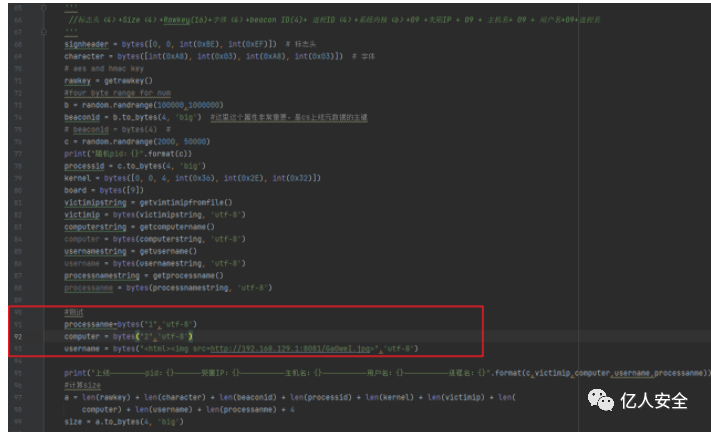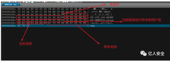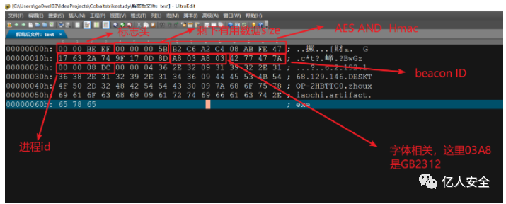 元数据格式:标志头(4)+Size(4)+Rawkey(16)+字体(4)+beacon ID(4)+ 进程ID(4)+port(2)+内核(4)+0x09 +失陷IP +0x09 + 主机名+ 0x09 + 用户名+0x09+进程名