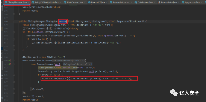 如下 源码中dialog.DialogManager类的beacon方法中是aggressor端前端swing操作beacon条目的方法: