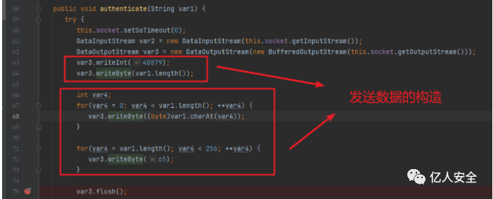 在authenticate方法中构造待发送的数据:如下图,简单分析可以得到构造的数据的形式是: