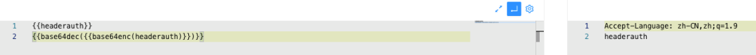 还有一种特殊情况,Fuzztag 调用无参函数时是可以省略()的,例如{{headerauth}},但是如果这个函数作为参数,即放在 Data2 Node 的位置会直接作为数据处理,这种情况不能省略括号,如图: