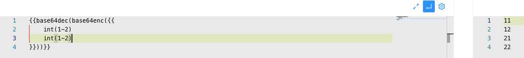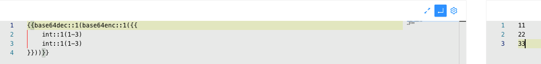 base64enc 函数嵌套 int 函数的传统写法是这样的:{{base64enc({{int(1-5)}})}},简化后:{{base64enc(int(1-5))}},在原本的基础上省略了int函数外的{{}}。