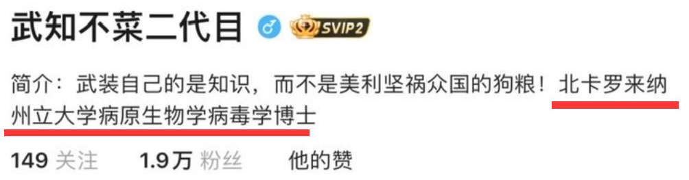 此人自称“北卡罗莱纳州立大学病毒学博士”。各种专业名词,云山雾罩讲了一大堆。不少人都信了,于是很恐慌。