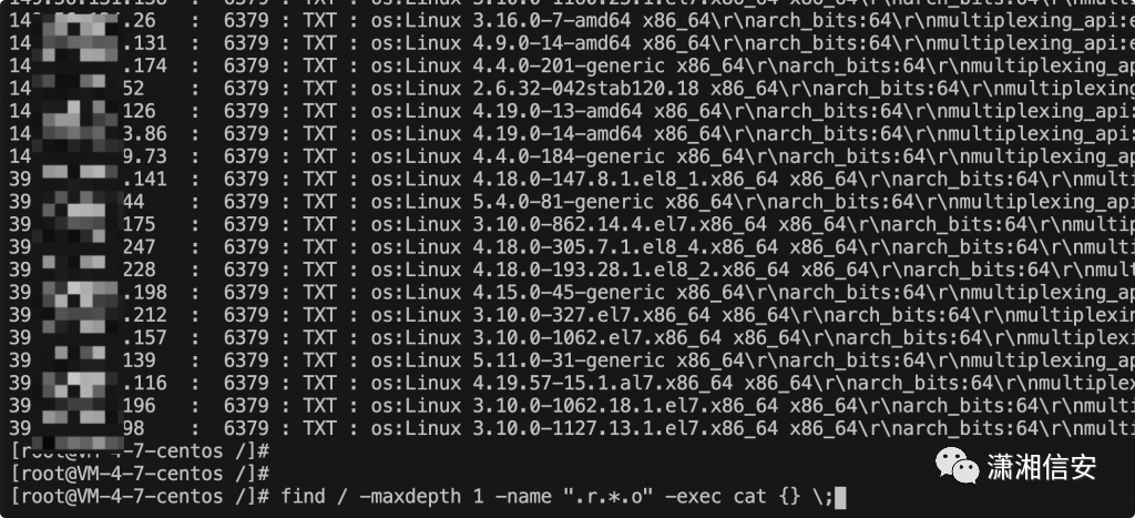 上面这些在入侵时间点发生过修改的文件,都需要检查是否被写入恶意命令。清理掉对应的恶意文件,此时入侵排查的大部分步骤已完成。同时使用find命令发现在/根目录下面有大量的以.r开头隐藏文件。这些都是挖矿木马对外扫描存在6375端口开放的ip。