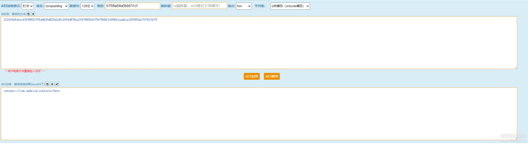 private static byte[] decode(byte[] paramArrayOfbyte, String paramString) {try {SecretKeySpec secretKeySpec = new SecretKeySpec(paramString.getBytes(), "AES");Cipher cipher = Cipher.getInstance("AES");cipher.init(2, secretKeySpec);return cipher.doFinal(paramArrayOfbyte);} catch (Exception exception) {exception.printStackTrace();return null;}}